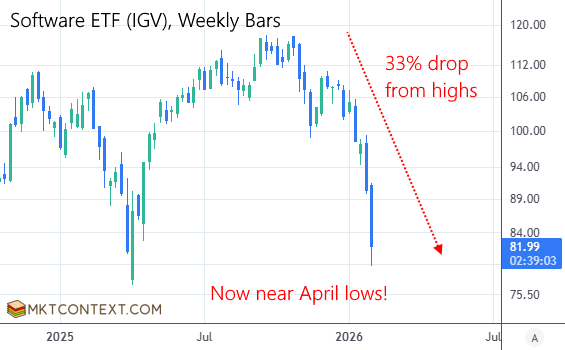 This week we saw a sharp unwind in software stocks that dragged the Nasdaq down (dubbed âSaaS-pocalypseâ). We initiated on this topic several weeks ago arguing that software is getting democratized and the SaaS pay-per-user business model is under pressure. The market is now waking to this reality, sending the IGV ETF down -33% to April lows: